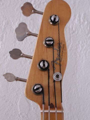 Leo Fender made history in 1951 with the introduction of the worldÕs first electric bass guitar. 50 years ago Fender made THIS bass guitar. This one is the second production year 1952, of the Fender precision bass. The neck date is 7-3-52 in pencil. The bridge also dates to 1952 S#0507. The tuning pegs are the original (riveted style) pegs. The volume and tone knobs are also original. The original pot cover plate is also here along with the bridge and saddles. The original cord jack and through body string hole hardware is still here and in good condition. This bass plays very, very good. The action in unbelievable and the tone is pure fat Fender P-Bass. After playing and owning this bass I can see how proud and happy Leo Fender must have been with his invention. This bass only needs a few items to be (all original). The pick guard is a reissue along with the nut. I donÕt know about the pots because it is hard to see the numbers. But because of the appearance of some new wiring I suspect the pots are from another year. The following numbers are what I can see on the pots V-IM FI-250N 113A6441 3 140913. If you have any info. on these numbers send it to me and I will post it. I also know that the pickup is an original style replacement. I have the pickup chrome cover but not the bridge cover. The bass has been refinished so the body date is unreadable. I can only see a D in the neck cavity and some pencil marks. Whether you are a collector or a player this bass will be an incredible Bass to own. The case is rough but all latches work IÕm not sure if it original but it is black tolex with orange lining no logo and the unpadded inner lining is nailed in place with original tiny finishing nails. Ask all questions before bidding, buyer to pay for shipping, handling and insurance. Payment must be received within seven days of the end of the auction. Cashiers check or money orders only