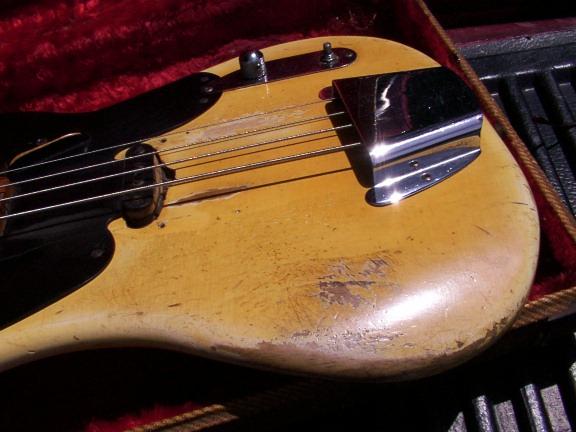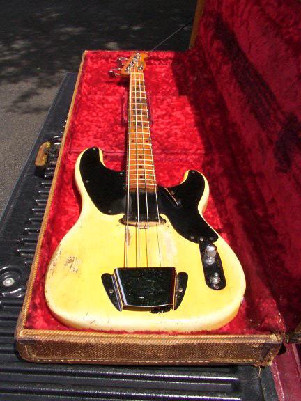 1955 AMERICAN REAL DEAL FENDER PRECISION BASS -- ORIGINAL Ð WHITE - BUTTERSCOTCH ASH BODY Ð ÒA WHITE STING MODELÓ Ð -- NECK DATE APRIL 1955 -- SERIAL NUMBER 0550 [YES Ð CHECK THIS SITE FOR VERIFICATION,,, http://www.provide.net/~cfh/fender.html#serial] -- VERY LIGHT WEIGHT FOR AN ASH BODY -- 2 MISSING PARTS Ð 1 TONE KNOB & THE PICK UP COVER -- PICTURES TELL THE STORY ON THE CONDITION Ð Please email at billysbassplace@charter.net for more jpgÕs OR Information ****I WILL SHIP INTERNATIONAL**** INTERNATIONAL SHIPPING COSTS DEPENDENT ON LOCATION - - *****PLEASE NOTE***** PAYMENT ON THIS ITEM WILL ONLY BE BY US POSTAL MONEYS, WESTERN UNION MONEY ORDERS OR WIRE TRANSFER Ð IF CASHIERÕS CHECK, I WILL CALL AND VERIFY CHECK BEFORE SHIPPING---. SEE OTHER AUCTIONS ON EBAY. FOR OTHER JAZZ & PRECISION BASSES AND JAZZ BASS & PRECISION BASS PARTS, SEE INVENTORY AT BILLY'S BASS PLACE http://www.promusicfind.com/billysbassplace/ OR GO TO "ME" AND CLICK ON FAVORITE LINKS: BILLY'S BASS PLACE***I WILL BE GLAD TO LEAVE POSITIVE FEEDBACK, ONLY AFTER YOU ARE SATISFIED WITH YOUR PURCHASE & I WOULD HOPE YOU WOULD DO THE SAME FOR ME--THANKS BILL FROM BILLYSBASSPLACE