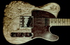 The body is a scene of Christ's tomb. The stone has been rolled away and christ is ascending to heaven surrounded by a dozen angels. Mary stands in front of the open tomb. The pick guard is black on black... engraved in it is the text of "John 3:16". On the headstock, the original decal was copied in bas relief, preserving the word "Broadcaster"