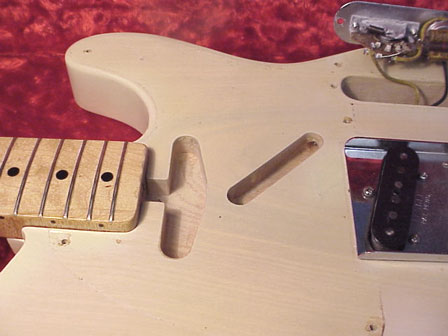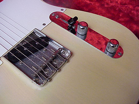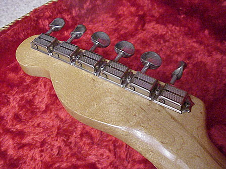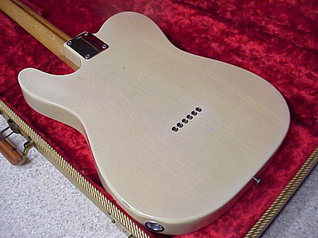 Upon receiving the guitar I decided to examine the guitar and take a look at the control cavity, under the guard, the neck pocket and the neck date. It was as if I were the first person to turn the screws on the instrument in 47 years. They were all tight. I was able to take pictures of the control cavity and the body, but the neck is very tight in the pocket. I'm not up to exerting the force necessary to remove the neck just to take pictures. It would mean taking the chance of popping finish, or possibly hurting the neck or body, and it isn't going to happen. I photographed the part of the neck date that was visible with the guard removed. The pots are totally original as is the wiring. The pots have no visible date codes anywhere on either pot. The solder joints have been untouched. The masking tape dating mark - Mary 6-17-55 - is present in the control cavity. Anyone who knows the specs on mid-'50s Esquires and Teles knows what this guitar has on it: