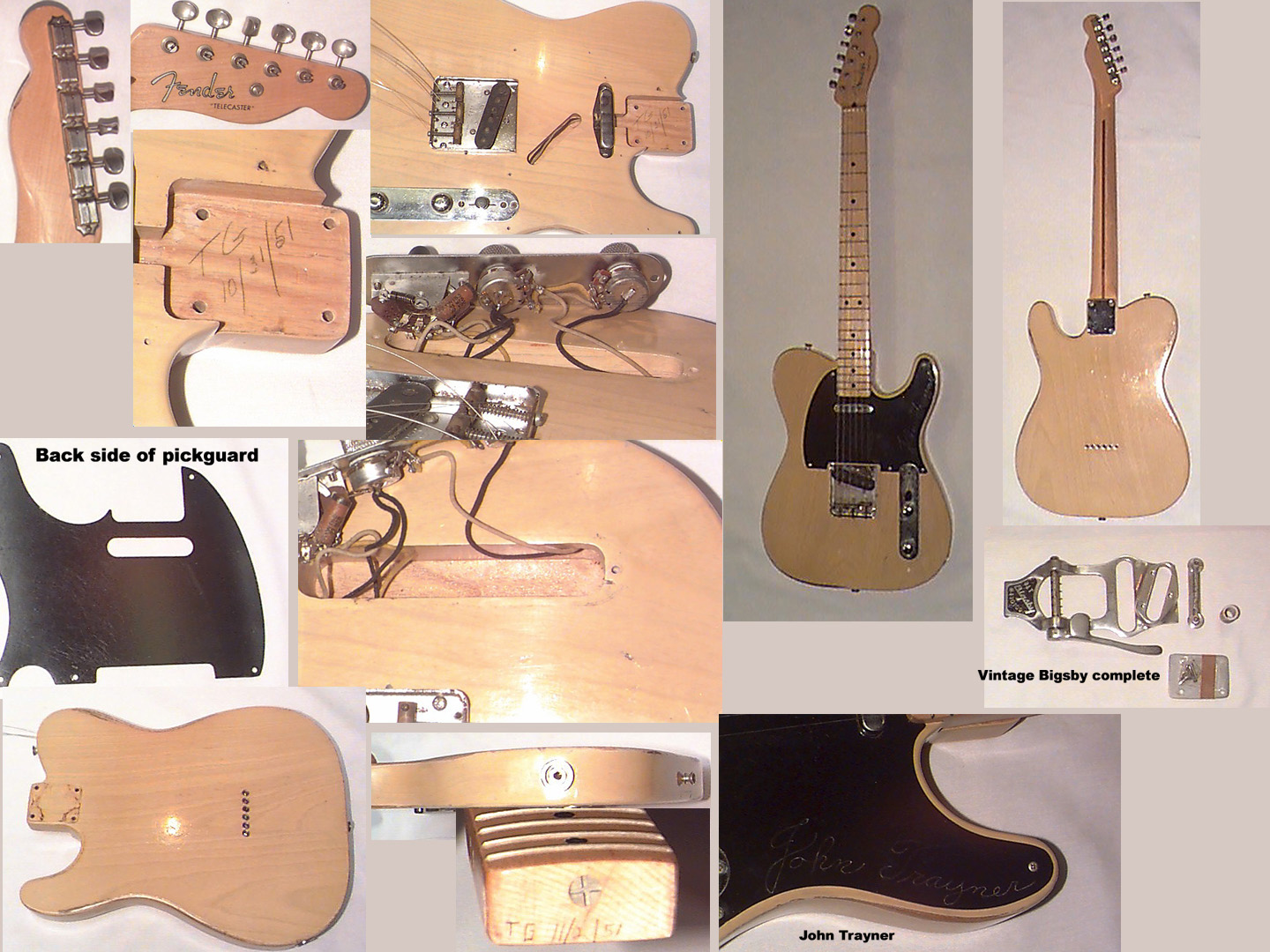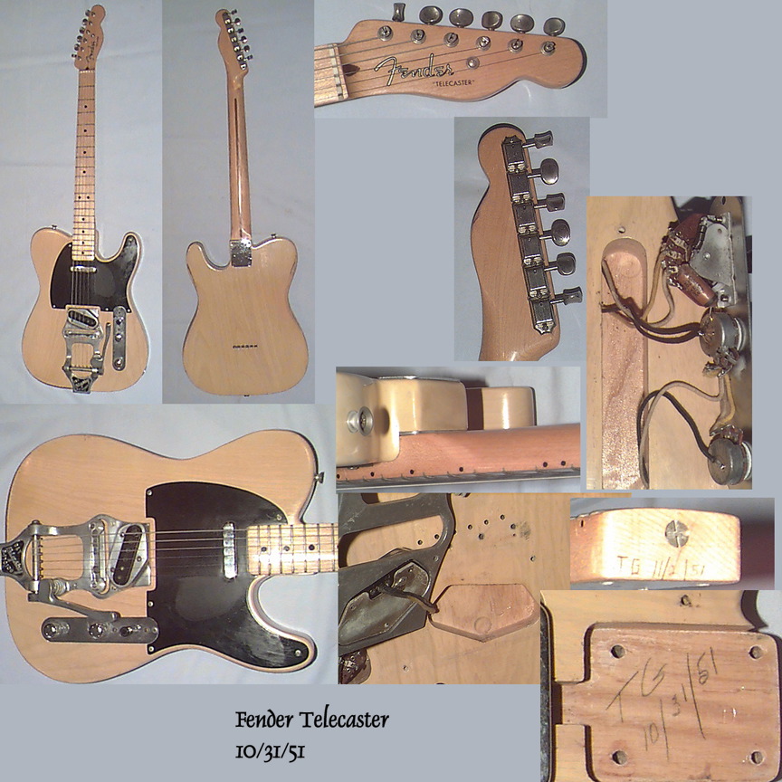 This beauty has it all. Neck date 11/2/51 TG body date 10/31/51 TG. original finish on body, neck has had some refinish work on the finger board and a fret job. Tuners original, it has a Bigsby that goes with it and was used at one time and the cover pick up plate almost covered up the two screw hole from the bigsby. The electronic are working fine and it does have the cap on the front pickup which makes its sound at a lessor volume then the back pick up which really bites and cuts through. the action is very good, the pick guard has the name of John Traynor on it and it is a 50's tele pick guard. It comes with a hard shell case not original to that year. Buyer prepays at close of auction within 4 days add $25 For shipping and handling within the USA. Good Luck